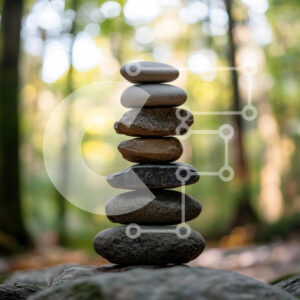 Intra Συλλεκτικό Ξύλινο Παζλ Plywood 4mm - Ισορροπημένη στοίβα βότσαλων στην παραλία Σε Ξύλινο Κουτί - Διαστάσεις: 10x10 cm – 25 κομμάτια