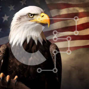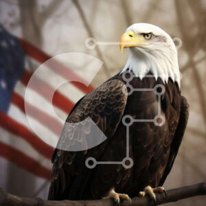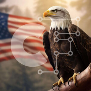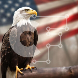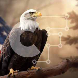 Intra Συλλεκτικό Ξύλινο Παζλ Plywood 4mm - Αετός σκαρφαλωμένος σε ένα κλαδί με την αμερικανική σημαία στο βάθος Σε Ξύλινο Κουτί - Διαστάσεις: 10x10 cm – 25 κομμάτια