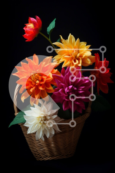 Intra Συλλεκτικό Ξύλινο Παζλ Plywood 4mm - Καλάθι με πολύχρωμα λουλούδια σε μαύρο φόντο Σε Ξύλινο Κουτί - Διαστάσεις: 10x10 cm – 25 κομμάτια