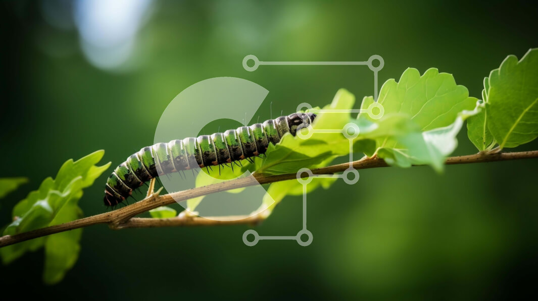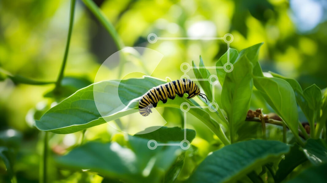 Intra Συλλεκτικό Ξύλινο Παζλ Plywood 4mm - Κάμπια μονάρχης στα πράσινα φύλλα στο δάσος Σε Ξύλινο Κουτί - Διαστάσεις: 10x10 cm – 25 κομμάτια