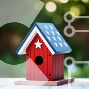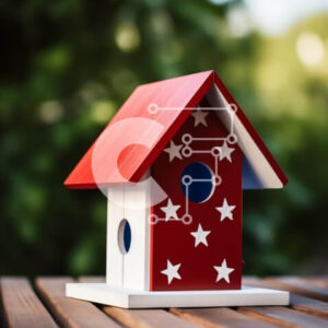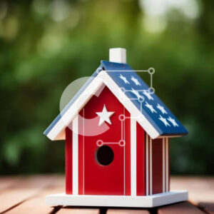 Intra Συλλεκτικό Ξύλινο Παζλ Plywood 4mm - Αμερικανική σημαία Birdhouse σε εξωτερικούς χώρους με πουλιά Σε Ξύλινο Κουτί - Διαστάσεις: 10x10 cm – 25 κομμάτια
