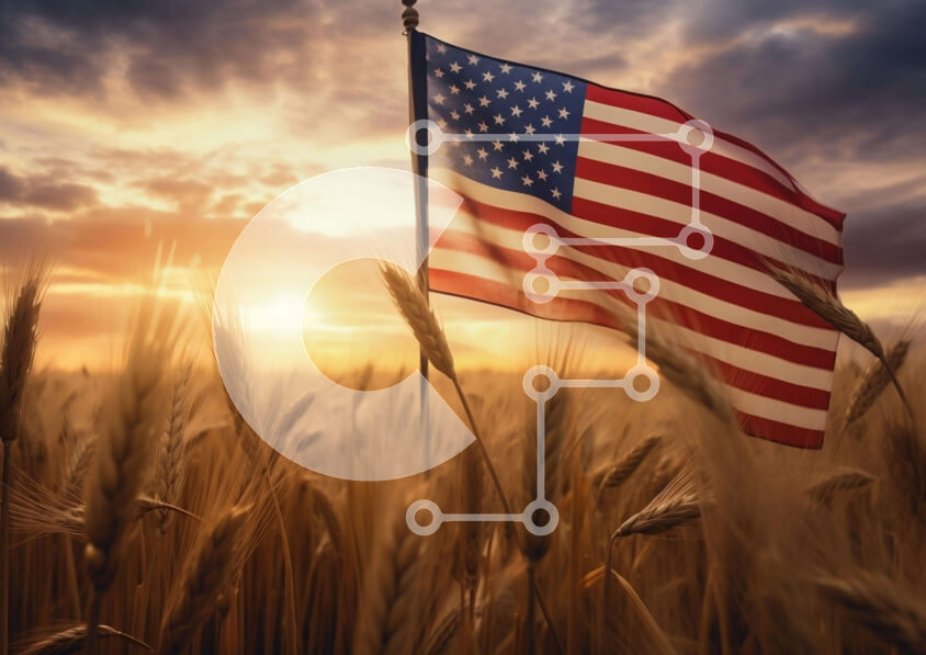 Intra Συλλεκτικό Ξύλινο Παζλ Plywood 4mm - Αμερικανική σημαία στο χωράφι σίτου στο ηλιοβασίλεμα Σε Ξύλινο Κουτί - Διαστάσεις: 10x10 cm – 25 κομμάτια