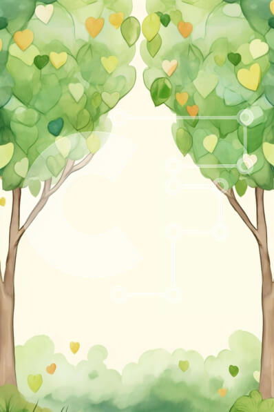 Intra Συλλεκτικό Ξύλινο Παζλ Plywood 4mm - Ακουαρέλα φύση φόντο με πράσινα δέντρα και φύλλα σε σχήμα καρδιάς Σε Ξύλινο Κουτί - Διαστάσεις: 10x10 cm – 25 κομμάτια
