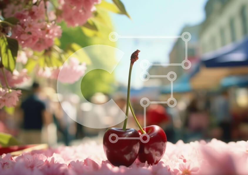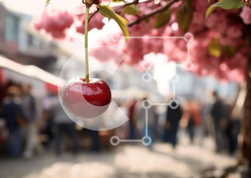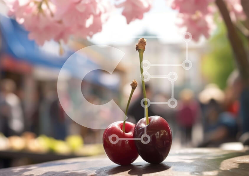 Intra Συλλεκτικό Ξύλινο Παζλ Plywood 4mm - Κεράσια σε έναν ξύλινο πάγκο σε μια εκδήλωση φεστιβάλ Σε Ξύλινο Κουτί - Διαστάσεις: 10x10 cm – 25 κομμάτια