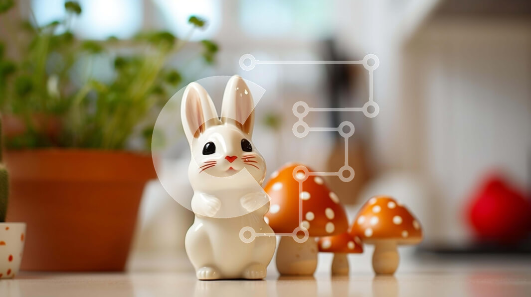 Intra Συλλεκτικό Ξύλινο Παζλ Plywood 4mm - Κεραμικό κουνέλι και πολύχρωμα μανιτάρια Σε Ξύλινο Κουτί - Διαστάσεις: 10x10 cm – 25 κομμάτια