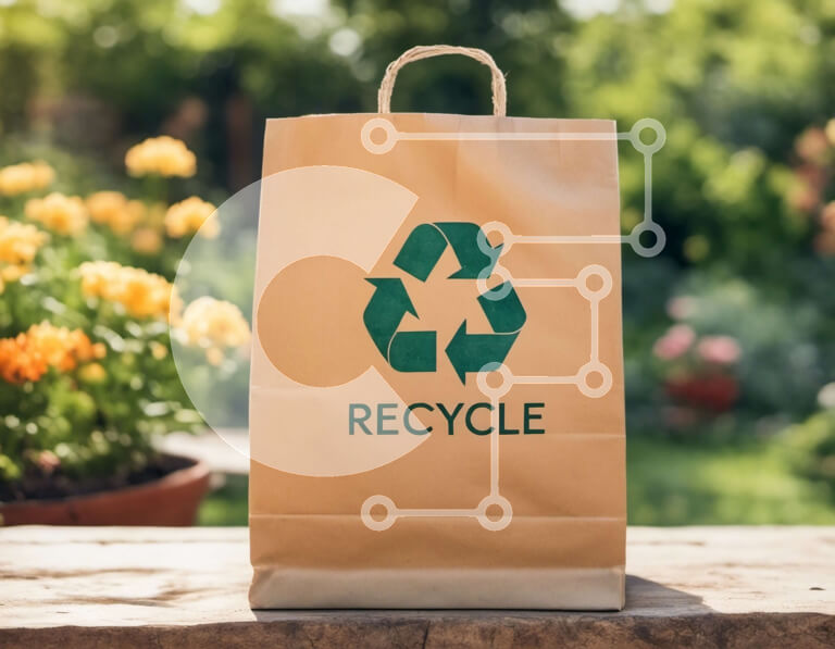 Intra Συλλεκτικό Ξύλινο Παζλ Plywood 4mm - Ανακυκλώστε καφέ χάρτινη τσάντα με φυτά και λουλούδια στον κήπο Σε Ξύλινο Κουτί - Διαστάσεις: 10x10 cm – 25 κομμάτια
