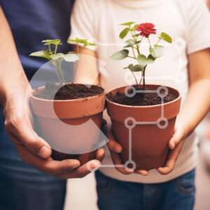 Intra Συλλεκτικό Ξύλινο Παζλ Plywood 4mm - Άνδρας και παιδί με φυτά σε γλάστρες Σε Ξύλινο Κουτί - Διαστάσεις: 10x10 cm – 25 κομμάτια