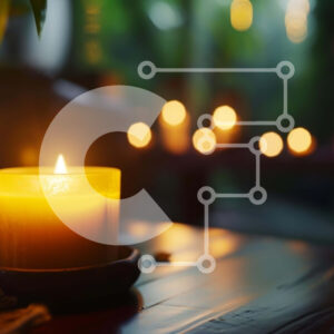 Intra Συλλεκτικό Ξύλινο Παζλ Plywood 4mm - Αναμμένο κερί σε ξύλινο τραπέζι εξωτερικού χώρου που περιβάλλεται από φυτά Σε Ξύλινο Κουτί - Διαστάσεις: 10x10 cm – 25 κομμάτια