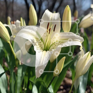 Intra Συλλεκτικό Ξύλινο Παζλ Plywood 4mm - Ανθισμένα λευκά κρίνα σε έναν κήπο Σε Ξύλινο Κουτί - Διαστάσεις: 10x10 cm – 25 κομμάτια