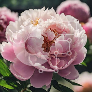 Intra Συλλεκτικό Ξύλινο Παζλ Plywood 4mm - Ανθισμένο ροζ λουλούδι παιώνιας με πράσινα φύλλα Σε Ξύλινο Κουτί - Διαστάσεις: 10x10 cm – 25 κομμάτια