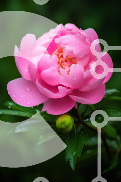 Intra Συλλεκτικό Ξύλινο Παζλ Plywood 4mm - Ανθισμένο ροζ λουλούδι παιώνιας με σταγονίδια νερού Σε Ξύλινο Κουτί - Διαστάσεις: 10x10 cm – 25 κομμάτια