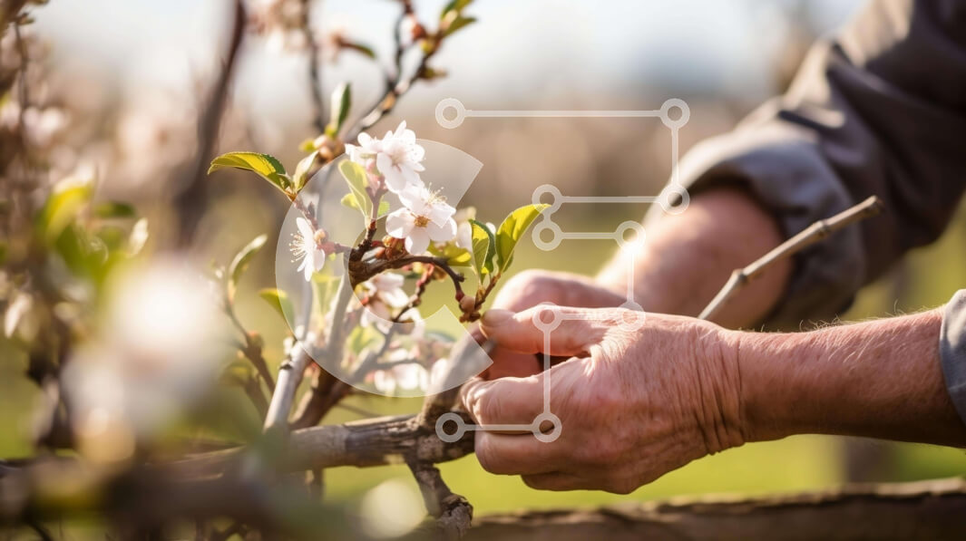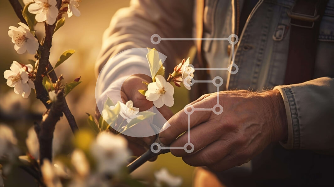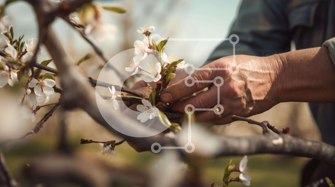 Intra Συλλεκτικό Ξύλινο Παζλ Plywood 4mm - Άτομο που εργάζεται σε κλαδιά αμυγδαλιάς σε ένα περιβόλι Σε Ξύλινο Κουτί - Διαστάσεις: 10x10 cm – 25 κομμάτια