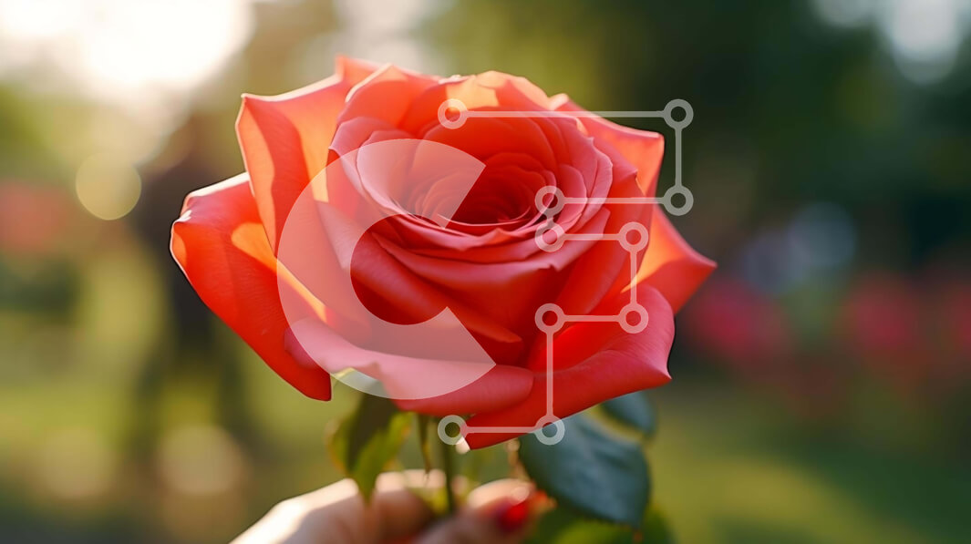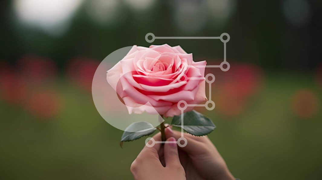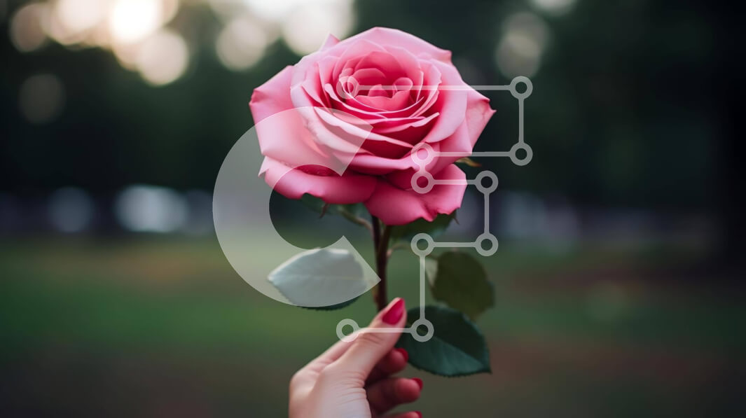 Intra Συλλεκτικό Ξύλινο Παζλ Plywood 4mm - Άτομο που κρατά ένα ροζ τριαντάφυλλο με θολό φόντο Σε Ξύλινο Κουτί - Διαστάσεις: 10x10 cm – 25 κομμάτια
