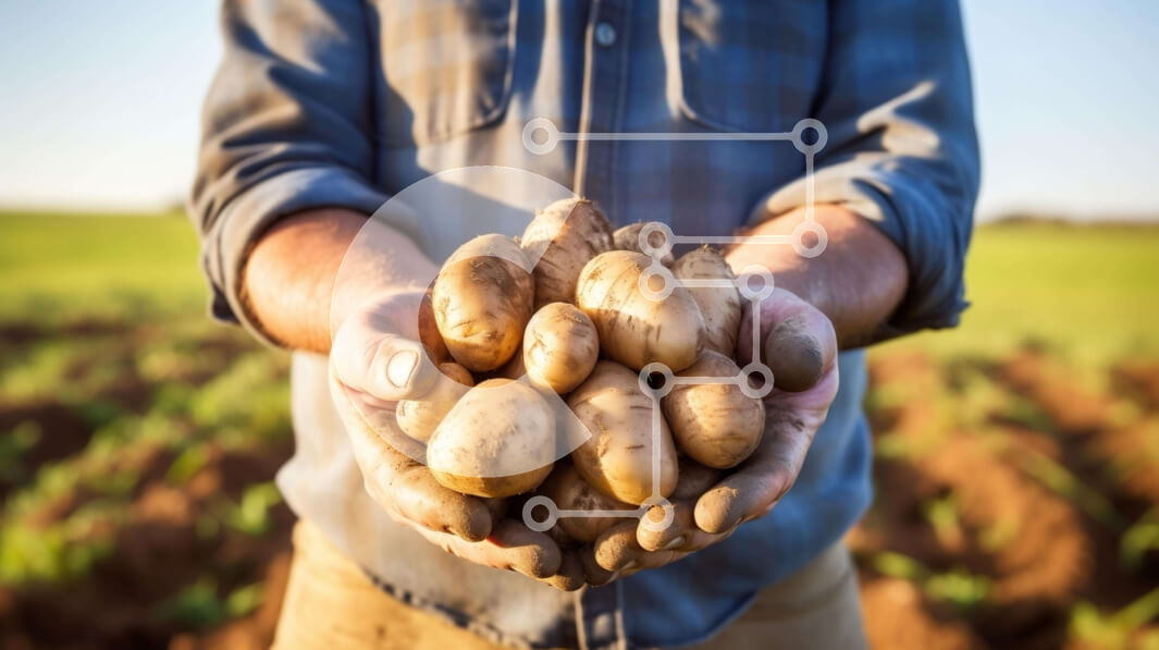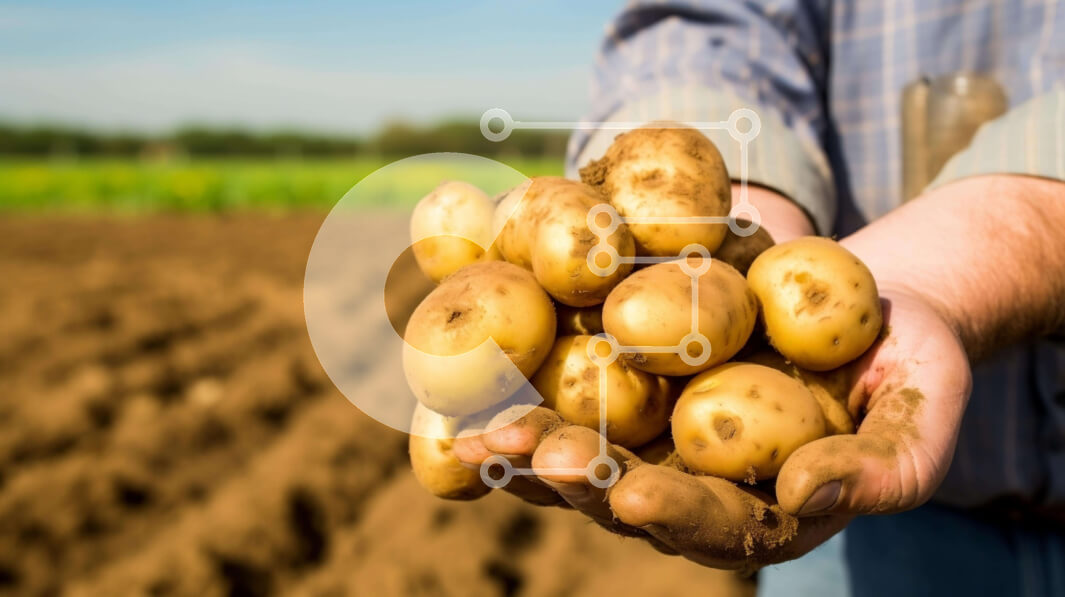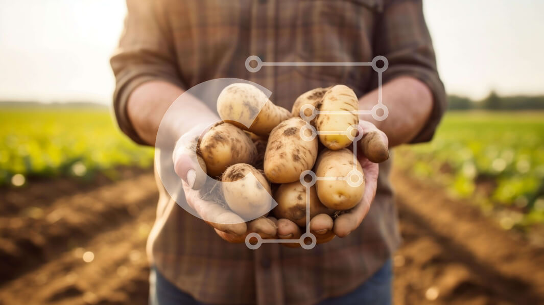 Intra Συλλεκτικό Ξύλινο Παζλ Plywood 4mm - Άτομο που κρατά ένα μάτσο φρέσκες πατάτες Σε Ξύλινο Κουτί - Διαστάσεις: 10x10 cm – 25 κομμάτια