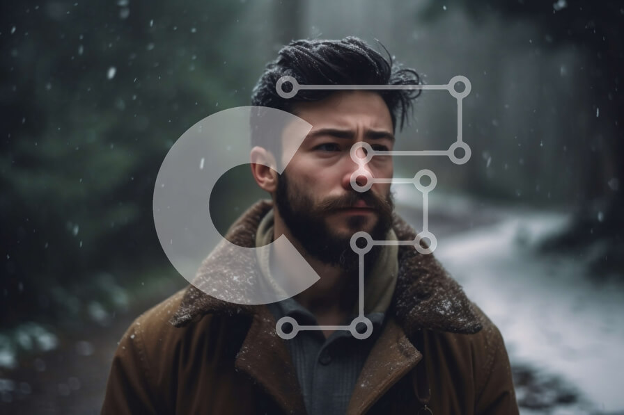 Intra Συλλεκτικό Ξύλινο Παζλ Plywood 4mm - Άτομο που στέκεται στη μέση του χιονισμένου δασικού τοπίου Σε Ξύλινο Κουτί - Διαστάσεις: 10x10 cm – 25 κομμάτια