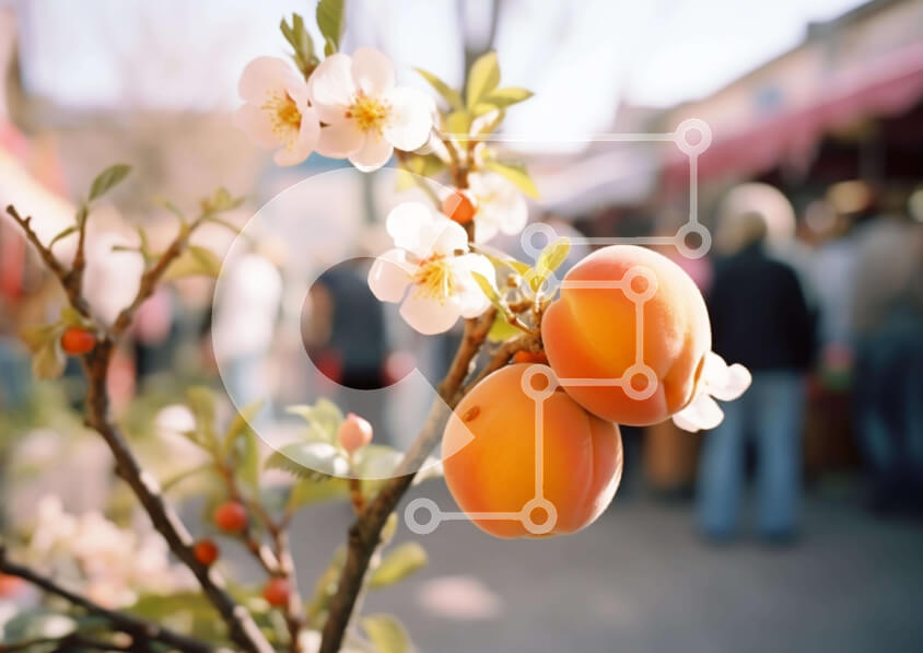 Intra Συλλεκτικό Ξύλινο Παζλ Plywood 4mm - Βερίκοκα σε κλαδί πορτοκαλιάς με εορταστική ατμόσφαιρα Σε Ξύλινο Κουτί - Διαστάσεις: 10x10 cm – 25 κομμάτια