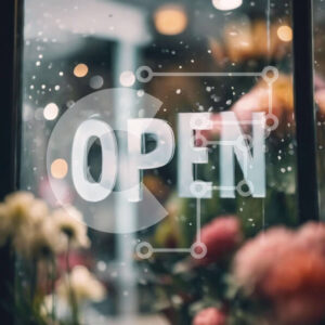 Intra Συλλεκτικό Ξύλινο Παζλ Plywood 4mm - Βιτρίνα με ανοιχτή πινακίδα και μπουκέτα λουλουδιών Σε Ξύλινο Κουτί - Διαστάσεις: 10x10 cm – 25 κομμάτια