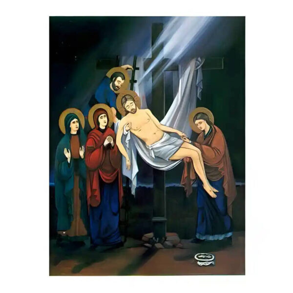 Βασικά Χαρακτηριστικά: – Σχέδιο: Κλασική βυζαντινή εικονογραφία με ζωηρό κόκκινο περίγραμμα – Υλικό: Ξύλο Μασίφ Φλαμουρία υψηλής αντοχής με προστατευτικό βερνίκι για ποιότητα που διαρκεί – Προέλευση: Χειροποίητο στην Ελλάδα – Σκοπός: Ιδανικό για γωνιές προσευχής, εκκλησίες, διακόσμηση σπιτιού ή ως δώρο με νόημα Διαθέσιμα μεγέθη: 10×7 cm (3,9 x 2,8 ίντσες) 15×11 cm (5,9 x 4,3 ίντσες) 21×15 cm (8,3 x 5,9 ίντσες) 26×20 cm (10,2 x 7,9 ίντσες) 40×30 cm (15,8 x 11,8 ίντσες) 45×35 cm (17,7 x 13,8 ίντσες) 50×40 cm (19,7 x 15,8 ίντσες)► Εικόνα Αποκαθήλωση του Χριστού ξύλινη.  Χειροποίητη ξύλινη εικόνα, ειδικής επεξεργασίας σε σκληρό Φλαμουριά Ξύλο Εικόνα Ορθόδοξης τέχνης, σκαλισμένη ή τυπωμένη σε ξύλο φλαμουριάς υψηλής ποιότητας. Η φυσική απαλότητα και ομοιομορφία του ξύλου τονίζει κάθε λεπτομέρεια του εικονίσματος, αναδεικνύοντας τη βαθιά πνευματικότητα και την ιερότητα της παράδοσης. Ιδανική για οικιακό εικονοστάσι, δώρο βάπτισης, γάμου ή αφιέρωμα σε ναό. Το ξύλο έχει υποστεί ειδική επεξεργασία για αντοχή και αισθητική αρμονία, κρατώντας ζωντανά τα χρώματα και τη μορφή του προσώπου του Αγίου. με ανεξίτηλα χρώματα σε λεπτό καμβά.