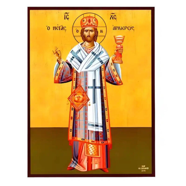 Εικόνα Ορθοδοξίας με περίγραμμα χρυσό σε ξύλο Φλαμουρίας με βάση Εικόνα Χριστός Μέγας Αρχιερεύς Χειροποίητη Ελληνορθόδοξη , Κρεμαστή πλάκα βυζαντινής τέχνης, χριστιανική τέχνη Διάσταση 45×35 cm (17,7 x 13,8 ίντσες) INTRAEK-6294670752