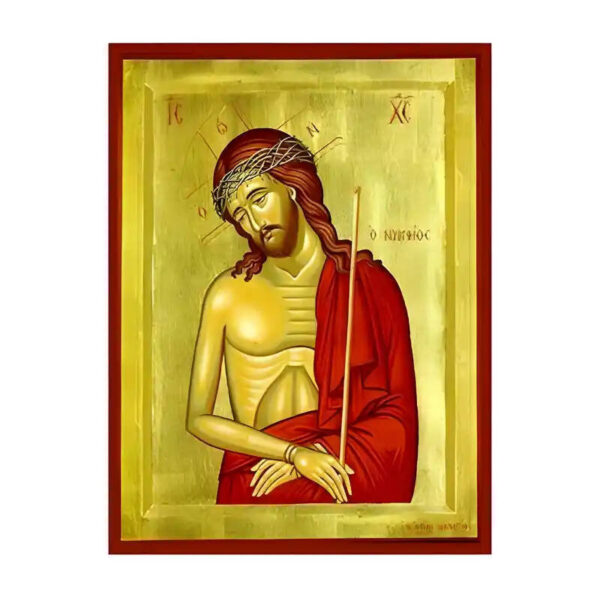 Βασικά Χαρακτηριστικά: – Σχέδιο: Κλασική βυζαντινή εικονογραφία με ζωηρό κόκκινο περίγραμμα – Υλικό: Ξύλο Μασίφ Φλαμουρία υψηλής αντοχής με προστατευτικό βερνίκι για ποιότητα που διαρκεί – Προέλευση: Χειροποίητο στην Ελλάδα – Σκοπός: Ιδανικό για γωνιές προσευχής, εκκλησίες, διακόσμηση σπιτιού ή ως δώρο με νόημα Διαθέσιμα μεγέθη: 10×7 cm (3,9 x 2,8 ίντσες) 15×11 cm (5,9 x 4,3 ίντσες) 21×15 cm (8,3 x 5,9 ίντσες) 26×20 cm (10,2 x 7,9 ίντσες) 40×30 cm (15,8 x 11,8 ίντσες) 45×35 cm (17,7 x 13,8 ίντσες) 50×40 cm (19,7 x 15,8 ίντσες)► Εικόνα του Χριστού ξύλινη. Χειροποίητη ξύλινη εικόνα, ειδικής επεξεργασίας σε σκληρό Φλαμουριά Ξύλο Εικόνα Ορθόδοξης τέχνης, σκαλισμένη ή τυπωμένη σε ξύλο φλαμουριάς υψηλής ποιότητας. Η φυσική απαλότητα και ομοιομορφία του ξύλου τονίζει κάθε λεπτομέρεια του εικονίσματος, αναδεικνύοντας τη βαθιά πνευματικότητα και την ιερότητα της παράδοσης. Ιδανική για οικιακό εικονοστάσι, δώρο βάπτισης, γάμου ή αφιέρωμα σε ναό. Το ξύλο έχει υποστεί ειδική επεξεργασία για αντοχή και αισθητική αρμονία, κρατώντας ζωντανά τα χρώματα και τη μορφή του προσώπου του Αγίου. με ανεξίτηλα χρώματα σε λεπτό καμβά.