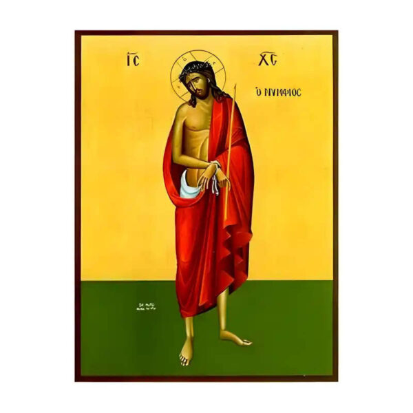 Βασικά Χαρακτηριστικά: – Σχέδιο: Κλασική βυζαντινή εικονογραφία με ζωηρό κόκκινο περίγραμμα – Υλικό: Ξύλο Μασίφ Φλαμουρία υψηλής αντοχής με προστατευτικό βερνίκι για ποιότητα που διαρκεί – Προέλευση: Χειροποίητο στην Ελλάδα – Σκοπός: Ιδανικό για γωνιές προσευχής, εκκλησίες, διακόσμηση σπιτιού ή ως δώρο με νόημα Διαθέσιμα μεγέθη: 10×7 cm (3,9 x 2,8 ίντσες) 15×11 cm (5,9 x 4,3 ίντσες) 21×15 cm (8,3 x 5,9 ίντσες) 26×20 cm (10,2 x 7,9 ίντσες) 40×30 cm (15,8 x 11,8 ίντσες) 45×35 cm (17,7 x 13,8 ίντσες) 50×40 cm (19,7 x 15,8 ίντσες)► Εικόνα του Χριστού ξύλινη. Χειροποίητη ξύλινη εικόνα, ειδικής επεξεργασίας σε σκληρό Φλαμουριά Ξύλο Εικόνα Ορθόδοξης τέχνης, σκαλισμένη ή τυπωμένη σε ξύλο φλαμουριάς υψηλής ποιότητας. Η φυσική απαλότητα και ομοιομορφία του ξύλου τονίζει κάθε λεπτομέρεια του εικονίσματος, αναδεικνύοντας τη βαθιά πνευματικότητα και την ιερότητα της παράδοσης. Ιδανική για οικιακό εικονοστάσι, δώρο βάπτισης, γάμου ή αφιέρωμα σε ναό. Το ξύλο έχει υποστεί ειδική επεξεργασία για αντοχή και αισθητική αρμονία, κρατώντας ζωντανά τα χρώματα και τη μορφή του προσώπου του Αγίου. με ανεξίτηλα χρώματα σε λεπτό καμβά.