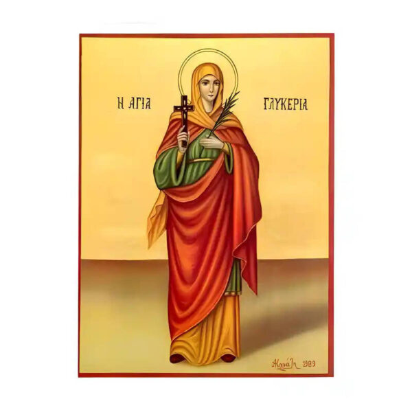 Εικόνα Ορθοδοξίας με περίγραμμα χρυσό σε ξύλο Φλαμουρίας με βάση Εικόνα Αγία Γλυκερία Χειροποίητη Ελληνορθόδοξη , Κρεμαστή πλάκα βυζαντινής τέχνης, χριστιανική τέχνη Διάσταση 45×35 cm (17,7 x 13,8 ίντσες) INTRAEK-6294670659