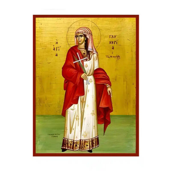 Εικόνα Ορθοδοξίας με περίγραμμα χρυσό σε ξύλο Φλαμουρίας με βάση Εικόνα Αγία Γλυκερία Χειροποίητη Ελληνορθόδοξη , Κρεμαστή πλάκα βυζαντινής τέχνης, χριστιανική τέχνη Διάσταση 45×35 cm (17,7 x 13,8 ίντσες) INTRAEK-6294670657