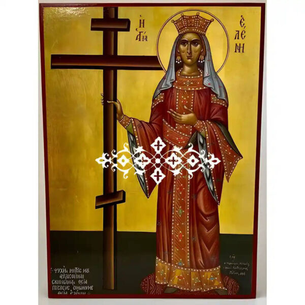 Βασικά Χαρακτηριστικά: – Σχέδιο: Κλασική βυζαντινή εικονογραφία με ζωηρό κόκκινο περίγραμμα – Υλικό: Ξύλο Μασίφ Φλαμουρία υψηλής αντοχής με προστατευτικό βερνίκι για ποιότητα που διαρκεί – Προέλευση: Χειροποίητο στην Ελλάδα – Σκοπός: Ιδανικό για γωνιές προσευχής, εκκλησίες, διακόσμηση σπιτιού ή ως δώρο με νόημα Διαθέσιμα μεγέθη: 10×7 cm (3,9 x 2,8 ίντσες) 15×11 cm (5,9 x 4,3 ίντσες) 21×15 cm (8,3 x 5,9 ίντσες) 26×20 cm (10,2 x 7,9 ίντσες) 40×30 cm (15,8 x 11,8 ίντσες) 45×35 cm (17,7 x 13,8 ίντσες) 50×40 cm (19,7 x 15,8 ίντσες)► Εικόνα της Αγίας Ελένης ξύλινη. Χειροποίητη ξύλινη εικόνα, ειδικής επεξεργασίας σε σκληρό Φλαμουριά Ξύλο Εικόνα Ορθόδοξης τέχνης, σκαλισμένη ή τυπωμένη σε ξύλο φλαμουριάς υψηλής ποιότητας. Η φυσική απαλότητα και ομοιομορφία του ξύλου τονίζει κάθε λεπτομέρεια του εικονίσματος, αναδεικνύοντας τη βαθιά πνευματικότητα και την ιερότητα της παράδοσης. Ιδανική για οικιακό εικονοστάσι, δώρο βάπτισης, γάμου ή αφιέρωμα σε ναό. Το ξύλο έχει υποστεί ειδική επεξεργασία για αντοχή και αισθητική αρμονία, κρατώντας ζωντανά τα χρώματα και τη μορφή του προσώπου του Αγίου. με ανεξίτηλα χρώματα σε λεπτό καμβά.