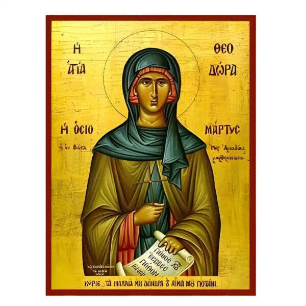 Βασικά Χαρακτηριστικά: – Σχέδιο: Κλασική βυζαντινή εικονογραφία με ζωηρό κόκκινο περίγραμμα – Υλικό: Ξύλο Μασίφ Φλαμουρία υψηλής αντοχής με προστατευτικό βερνίκι για ποιότητα που διαρκεί – Προέλευση: Χειροποίητο στην Ελλάδα – Σκοπός: Ιδανικό για γωνιές προσευχής, εκκλησίες, διακόσμηση σπιτιού ή ως δώρο με νόημα Διαθέσιμα μεγέθη: 10×7 cm (3,9 x 2,8 ίντσες) 15×11 cm (5,9 x 4,3 ίντσες) 21×15 cm (8,3 x 5,9 ίντσες) 26×20 cm (10,2 x 7,9 ίντσες) 40×30 cm (15,8 x 11,8 ίντσες) 45×35 cm (17,7 x 13,8 ίντσες) 50×40 cm (19,7 x 15,8 ίντσες)► Εικόνα της Αγίας Θεοδώρας Βάστα ξύλινη. Χειροποίητη ξύλινη εικόνα, ειδικής επεξεργασίας σε σκληρό Φλαμουριά Ξύλο Εικόνα Ορθόδοξης τέχνης, σκαλισμένη ή τυπωμένη σε ξύλο φλαμουριάς υψηλής ποιότητας. Η φυσική απαλότητα και ομοιομορφία του ξύλου τονίζει κάθε λεπτομέρεια του εικονίσματος, αναδεικνύοντας τη βαθιά πνευματικότητα και την ιερότητα της παράδοσης. Ιδανική για οικιακό εικονοστάσι, δώρο βάπτισης, γάμου ή αφιέρωμα σε ναό. Το ξύλο έχει υποστεί ειδική επεξεργασία για αντοχή και αισθητική αρμονία, κρατώντας ζωντανά τα χρώματα και τη μορφή του προσώπου του Αγίου. με ανεξίτηλα χρώματα σε λεπτό καμβά.