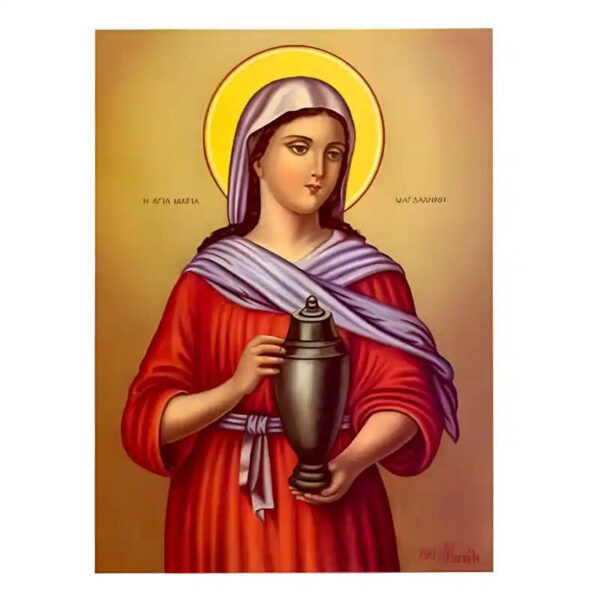 Βασικά Χαρακτηριστικά: – Σχέδιο: Κλασική βυζαντινή εικονογραφία με ζωηρό κόκκινο περίγραμμα – Υλικό: Ξύλο Μασίφ Φλαμουρία υψηλής αντοχής με προστατευτικό βερνίκι για ποιότητα που διαρκεί – Προέλευση: Χειροποίητο στην Ελλάδα – Σκοπός: Ιδανικό για γωνιές προσευχής, εκκλησίες, διακόσμηση σπιτιού ή ως δώρο με νόημα Διαθέσιμα μεγέθη: 10×7 cm (3,9 x 2,8 ίντσες) 15×11 cm (5,9 x 4,3 ίντσες) 21×15 cm (8,3 x 5,9 ίντσες) 26×20 cm (10,2 x 7,9 ίντσες) 40×30 cm (15,8 x 11,8 ίντσες) 45×35 cm (17,7 x 13,8 ίντσες) 50×40 cm (19,7 x 15,8 ίντσες)► Εικόνα της Μαρίας της Μαγδαληνής