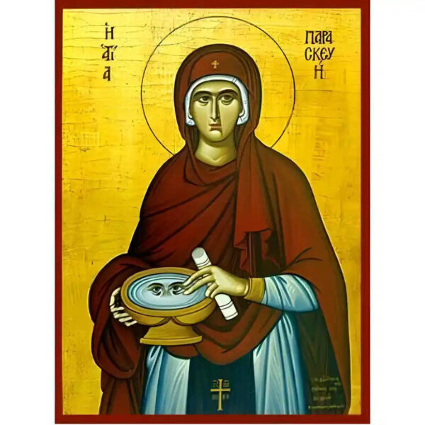 Βασικά Χαρακτηριστικά: – Σχέδιο: Κλασική βυζαντινή εικονογραφία με ζωηρό κόκκινο περίγραμμα – Υλικό: Ξύλο Μασίφ Φλαμουρία υψηλής αντοχής με προστατευτικό βερνίκι για ποιότητα που διαρκεί – Προέλευση: Χειροποίητο στην Ελλάδα – Σκοπός: Ιδανικό για γωνιές προσευχής, εκκλησίες, διακόσμηση σπιτιού ή ως δώρο με νόημα Διαθέσιμα μεγέθη: 10×7 cm (3,9 x 2,8 ίντσες) 15×11 cm (5,9 x 4,3 ίντσες) 21×15 cm (8,3 x 5,9 ίντσες) 26×20 cm (10,2 x 7,9 ίντσες) 40×30 cm (15,8 x 11,8 ίντσες) 45×35 cm (17,7 x 13,8 ίντσες) 50×40 cm (19,7 x 15,8 ίντσες)► Εικόνα της Αγίας Παρασκευής χρυσή, ξύλινη. Χειροποίητη ξύλινη εικόνα, ειδικής επεξεργασίας σε σκληρό Φλαμουριά Ξύλο Εικόνα Ορθόδοξης τέχνης, σκαλισμένη ή τυπωμένη σε ξύλο φλαμουριάς υψηλής ποιότητας. Η φυσική απαλότητα και ομοιομορφία του ξύλου τονίζει κάθε λεπτομέρεια του εικονίσματος, αναδεικνύοντας τη βαθιά πνευματικότητα και την ιερότητα της παράδοσης. Ιδανική για οικιακό εικονοστάσι, δώρο βάπτισης, γάμου ή αφιέρωμα σε ναό. Το ξύλο έχει υποστεί ειδική επεξεργασία για αντοχή και αισθητική αρμονία, κρατώντας ζωντανά τα χρώματα και τη μορφή του προσώπου του Αγίου. με ανεξίτηλα χρώματα σε λεπτό καμβά.