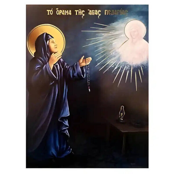 Βασικά Χαρακτηριστικά: – Σχέδιο: Κλασική βυζαντινή εικονογραφία με ζωηρό κόκκινο περίγραμμα – Υλικό: Ξύλο Μασίφ Φλαμουρία υψηλής αντοχής με προστατευτικό βερνίκι για ποιότητα που διαρκεί – Προέλευση: Χειροποίητο στην Ελλάδα – Σκοπός: Ιδανικό για γωνιές προσευχής, εκκλησίες, διακόσμηση σπιτιού ή ως δώρο με νόημα Διαθέσιμα μεγέθη: 10×7 cm (3,9 x 2,8 ίντσες) 15×11 cm (5,9 x 4,3 ίντσες) 21×15 cm (8,3 x 5,9 ίντσες) 26×20 cm (10,2 x 7,9 ίντσες) 40×30 cm (15,8 x 11,8 ίντσες) 45×35 cm (17,7 x 13,8 ίντσες) 50×40 cm (19,7 x 15,8 ίντσες)► Εικόνα της Αγίας Πελαγίας της Τηνίας