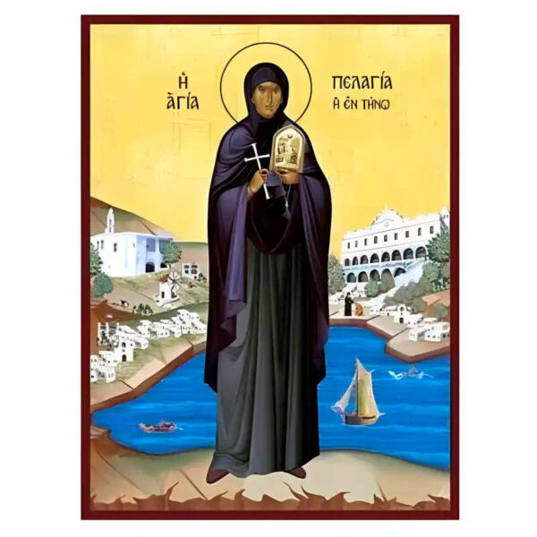 Εικόνα Ορθοδοξίας με περίγραμμα χρυσό σε ξύλο Φλαμουρίας με βάση Εικόνα Αγία Πελαγία Τηνία Χειροποίητη Ελληνορθόδοξη , Κρεμαστή πλάκα βυζαντινής τέχνης, χριστιανική τέχνη Διάσταση 45×35 cm (17,7 x 13,8 ίντσες) INTRAEK-6294670534