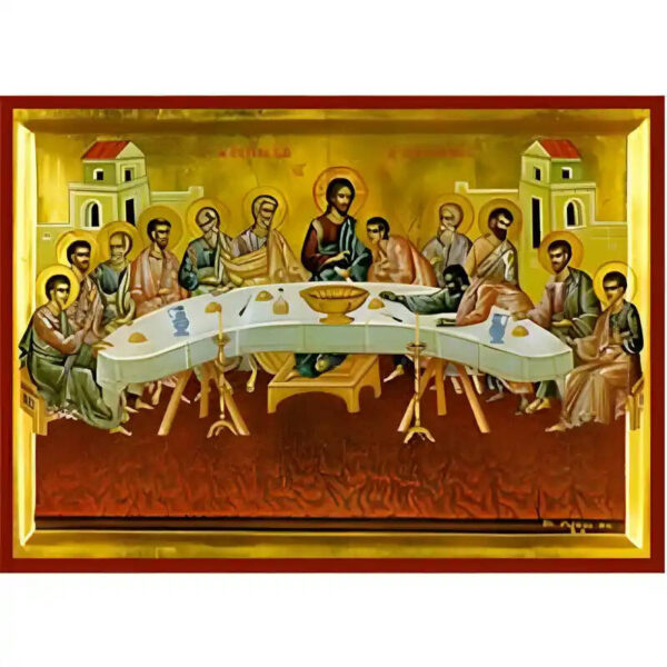 Βασικά Χαρακτηριστικά: – Σχέδιο: Κλασική βυζαντινή εικονογραφία με ζωηρό κόκκινο περίγραμμα – Υλικό: Ξύλο Μασίφ Φλαμουρία υψηλής αντοχής με προστατευτικό βερνίκι για ποιότητα που διαρκεί – Προέλευση: Χειροποίητο στην Ελλάδα – Σκοπός: Ιδανικό για γωνιές προσευχής, εκκλησίες, διακόσμηση σπιτιού ή ως δώρο με νόημα Διαθέσιμα μεγέθη: 10×7 cm (3,9 x 2,8 ίντσες) 15×11 cm (5,9 x 4,3 ίντσες) 21×15 cm (8,3 x 5,9 ίντσες) 26×20 cm (10,2 x 7,9 ίντσες) 40×30 cm (15,8 x 11,8 ίντσες) 45×35 cm (17,7 x 13,8 ίντσες) 50×40 cm (19,7 x 15,8 ίντσες)► Εικόνα του Μυστικού Δείπνου ξύλινη.  Χειροποίητη ξύλινη εικόνα, ειδικής επεξεργασίας σε σκληρό Φλαμουριά Ξύλο Εικόνα Ορθόδοξης τέχνης, σκαλισμένη ή τυπωμένη σε ξύλο φλαμουριάς υψηλής ποιότητας. Η φυσική απαλότητα και ομοιομορφία του ξύλου τονίζει κάθε λεπτομέρεια του εικονίσματος, αναδεικνύοντας τη βαθιά πνευματικότητα και την ιερότητα της παράδοσης. Ιδανική για οικιακό εικονοστάσι, δώρο βάπτισης, γάμου ή αφιέρωμα σε ναό. Το ξύλο έχει υποστεί ειδική επεξεργασία για αντοχή και αισθητική αρμονία, κρατώντας ζωντανά τα χρώματα και τη μορφή του προσώπου του Αγίου. με ανεξίτηλα χρώματα σε λεπτό καμβά.