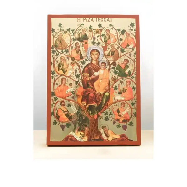 Εικόνα Ορθοδοξίας με περίγραμμα χρυσό σε ξύλο Φλαμουρίας με βάση Virgin Mary The Tree of Jesse, Ξύλινη Χειροποίητη Εικόνα μεΨηφιακή Εκτύπωση Ελληνικού Premium Βυζαντινού Στυλ Κρεμασμένο σε ξύλινη πλάκα Χειροποίητη Ελληνορθόδοξη εικόνα του Ιησού Χριστού, Κρεμαστή πλάκα βυζαντινής τέχνης, χριστιανική τέχνη Διάσταση 10×7 cm (3,9 x 2,8 ίντσες) INTRAEK-11005