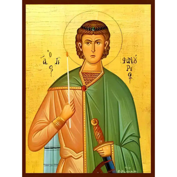 Εικόνα Ορθοδοξίας με περίγραμμα χρυσό σε ξύλο Φλαμουρίας με βάση Εικόνα ΑΓΙΟΣ ΦΑΝΟΥΡΙΟΣ, Ο ΜΕΓΑΛΟΜΑΡΤΥΣ Χειροποίητη Ελληνορθόδοξη εικόνα του Ιησού Χριστού, Κρεμαστή πλάκα βυζαντινής τέχνης, χριστιανική τέχνη Διάσταση 15×11 cm (5,9×4,3 ίντσες) INTRAEK-337757864555