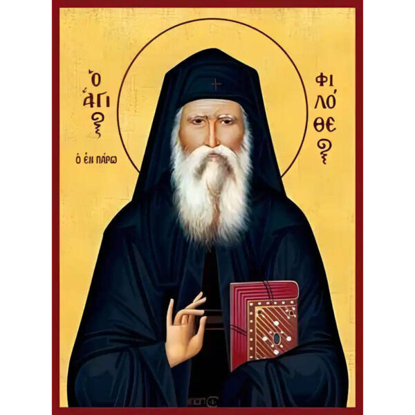 Εικόνα Ορθοδοξίας με περίγραμμα χρυσό σε ξύλο Φλαμουρίας με βάση Εικόνα ΑΓΙΟΣ ΦΙΛΟΘΕΟΣ ΖΕΡΒΑΚΟΣ, Ο ΕΝ ΠΑΡΩ Χειροποίητη Ελληνορθόδοξη εικόνα του Ιησού Χριστού, Κρεμαστή πλάκα βυζαντινής τέχνης, χριστιανική τέχνη Διάσταση 15×11 cm (5,9×4,3 ίντσες) INTRAEK-337757864546