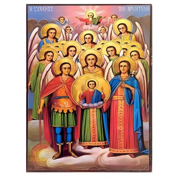 Εικόνα Ορθοδοξίας με περίγραμμα χρυσό σε ξύλο Φλαμουρίας με βάση Εικόνα Σύναξη Αρχαγγέλων Χειροποίητη Ελληνορθόδοξη , Κρεμαστή πλάκα βυζαντινής τέχνης, χριστιανική τέχνη Διάσταση 40×30 cm (15,8 x 11,8 ίντσες) INTRAEK-294670410