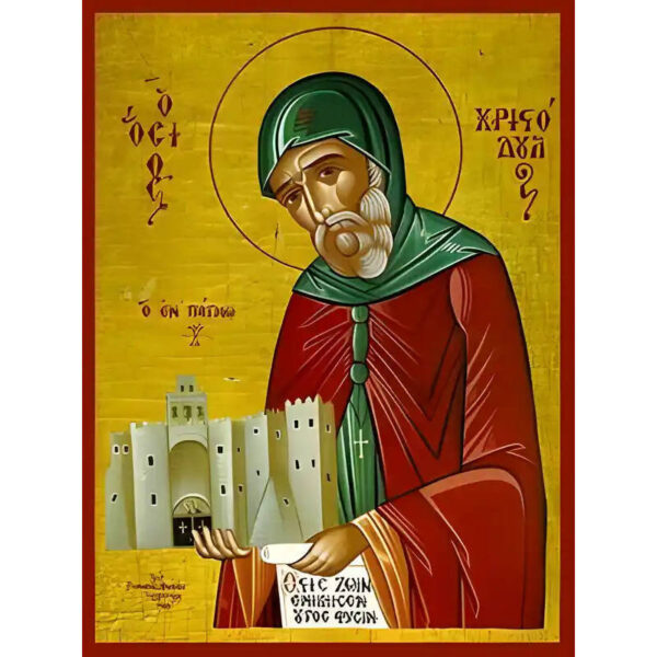Εικόνα Ορθοδοξίας με περίγραμμα χρυσό σε ξύλο Φλαμουρίας με βάση Εικόνα ΑΓΙΟΣ ΧΡΙΣΤΟΔΟΥΛΟΣ, Ο ΕΝ ΠΑΤΜΩ Χειροποίητη Ελληνορθόδοξη εικόνα του Ιησού Χριστού, Κρεμαστή πλάκα βυζαντινής τέχνης, χριστιανική τέχνη Διάσταση 15×11 cm (5,9×4,3 ίντσες) INTRAEK-337757864533