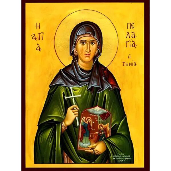 Εικόνα Ορθοδοξίας με περίγραμμα χρυσό σε ξύλο Φλαμουρίας με βάση Εικόνα ΑΓΙΑ ΠΕΛΑΓΙΑ, Η ΤΗΝΙΑ Χειροποίητη Ελληνορθόδοξη εικόνα του Ιησού Χριστού, Κρεμαστή πλάκα βυζαντινής τέχνης, χριστιανική τέχνη Διάσταση 40×30 cm (10,2×7,9 ίντσες) INTRAEK-1447757865241