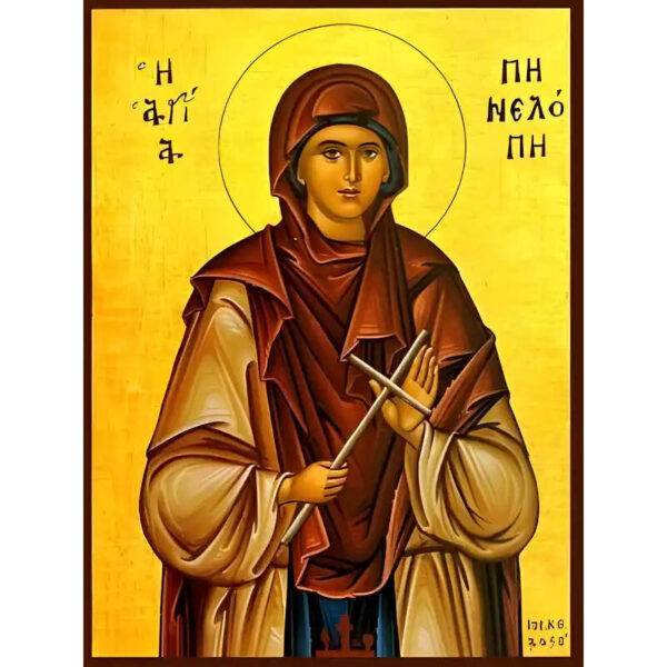 Εικόνα Ορθοδοξίας με περίγραμμα χρυσό σε ξύλο Φλαμουρίας με βάση Εικόνα ΑΓΙΑ ΠΗΝΕΛΟΠΗ, ΜΑΡΤΥΣ Χειροποίητη Ελληνορθόδοξη εικόνα του Ιησού Χριστού, Κρεμαστή πλάκα βυζαντινής τέχνης, χριστιανική τέχνη Διάσταση 40×30 cm (10,2×7,9 ίντσες) INTRAEK-1447757865240