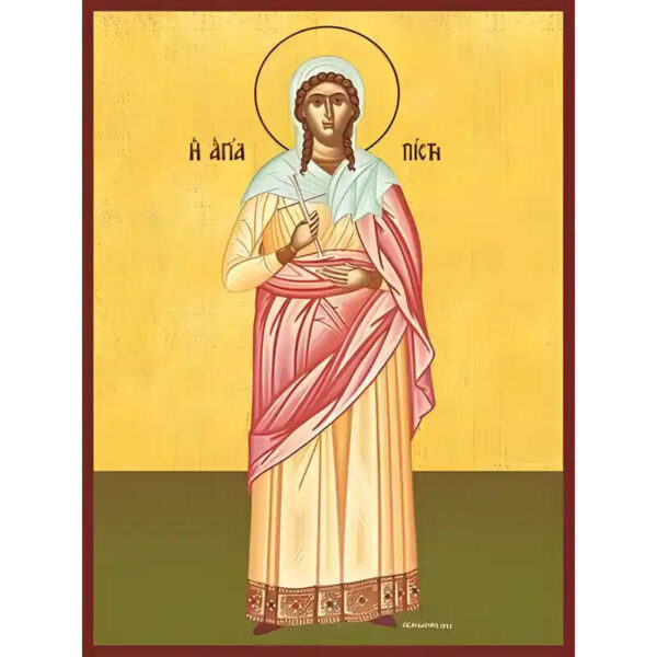 Εικόνα Ορθοδοξίας με περίγραμμα χρυσό σε ξύλο Φλαμουρίας με βάση Εικόνα ΑΓΙΑ ΠΙΣΤΙΣ, ΘΥΓΑΤΗΡ ΤΗΣ ΑΓΙΑΣ ΣΟΦΙΑΣ, ΟΛΟΣΩΜΗ Χειροποίητη Ελληνορθόδοξη εικόνα του Ιησού Χριστού, Κρεμαστή πλάκα βυζαντινής τέχνης, χριστιανική τέχνη Διάσταση 40×30 cm (10,2×7,9 ίντσες) INTRAEK-1447757865239