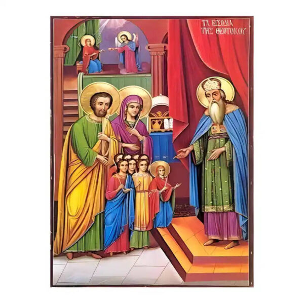 Βασικά Χαρακτηριστικά: – Σχέδιο: Κλασική βυζαντινή εικονογραφία με ζωηρό κόκκινο περίγραμμα – Υλικό: Ξύλο Μασίφ Φλαμουρία υψηλής αντοχής με προστατευτικό βερνίκι για ποιότητα που διαρκεί – Προέλευση: Χειροποίητο στην Ελλάδα – Σκοπός: Ιδανικό για γωνιές προσευχής, εκκλησίες, διακόσμηση σπιτιού ή ως δώρο με νόημα Διαθέσιμα μεγέθη: 10×7 cm (3,9 x 2,8 ίντσες) 15×11 cm (5,9 x 4,3 ίντσες) 21×15 cm (8,3 x 5,9 ίντσες) 26×20 cm (10,2 x 7,9 ίντσες) 40×30 cm (15,8 x 11,8 ίντσες) 45×35 cm (17,7 x 13,8 ίντσες) 50×40 cm (19,7 x 15,8 ίντσες)► Εικόνα των Εισοδίων της Θεοτόκου, ξύλινη. Χειροποίητη ξύλινη εικόνα, ειδικής επεξεργασίας σε σκληρό Φλαμουριά Ξύλο Εικόνα Ορθόδοξης τέχνης, σκαλισμένη ή τυπωμένη σε ξύλο φλαμουριάς υψηλής ποιότητας. Η φυσική απαλότητα και ομοιομορφία του ξύλου τονίζει κάθε λεπτομέρεια του εικονίσματος, αναδεικνύοντας τη βαθιά πνευματικότητα και την ιερότητα της παράδοσης. Ιδανική για οικιακό εικονοστάσι, δώρο βάπτισης, γάμου ή αφιέρωμα σε ναό. Το ξύλο έχει υποστεί ειδική επεξεργασία για αντοχή και αισθητική αρμονία, κρατώντας ζωντανά τα χρώματα και τη μορφή του προσώπου του Αγίου. με ανεξίτηλα χρώματα σε λεπτό καμβά.