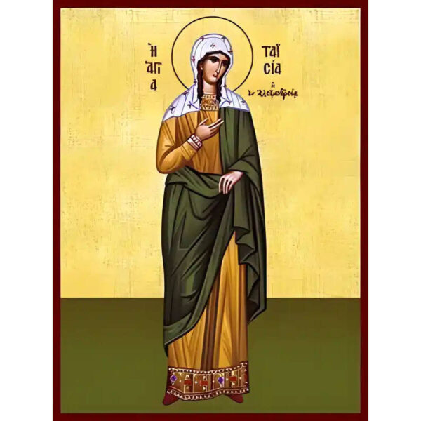 Εικόνα Ορθοδοξίας με περίγραμμα χρυσό σε ξύλο Φλαμουρίας με βάση Εικόνα ΑΓΙΑ ΤΑΪΣΙΑ Η ΘΑΙΣ, Η ΕΝ ΑΛΕΞΑΝΔΡΕΙΑ, ΟΛΟΣΩΜΗ Χειροποίητη Ελληνορθόδοξη εικόνα του Ιησού Χριστού, Κρεμαστή πλάκα βυζαντινής τέχνης, χριστιανική τέχνη Διάσταση 40×30 cm (10,2×7,9 ίντσες) INTRAEK-1447757865227