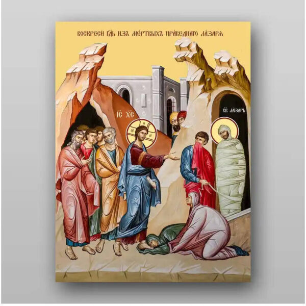 Εικόνα Ορθοδοξίας με περίγραμμα χρυσό σε ξύλο Φλαμουρίας με βάση Ανάσταση του Τιμίου Λαζάρου – Χειροποίητη Ελληνορθόδοξη , Κρεμαστή πλάκα βυζαντινής τέχνης, χριστιανική τέχνη Διάσταση 15×11 cm (5,9 x 4,3 ίντσες) INTRAEK-21021