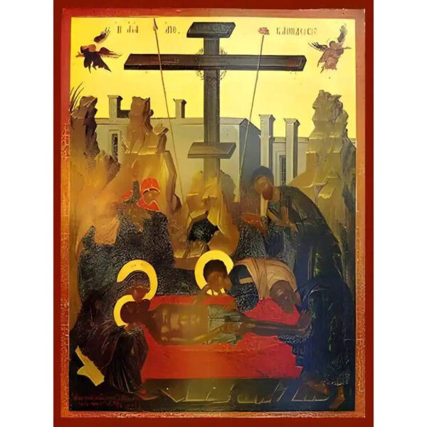 Εικόνα Ορθοδοξίας με περίγραμμα χρυσό σε ξύλο Φλαμουρίας με βάση Εικόνα ΑΠΟΚΑΘΗΛΩΣΙΣ (ΕΠΙΤΑΦΙΟΣ ΘΡΗΝΟΣ) Χειροποίητη Ελληνορθόδοξη εικόνα του Ιησού Χριστού, Κρεμαστή πλάκα βυζαντινής τέχνης, χριστιανική τέχνη Διάσταση 15×11 cm (5,9×4,3 ίντσες) INTRAEK-337757864505