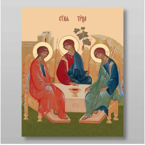 Εικόνα Ορθοδοξίας με περίγραμμα χρυσό σε ξύλο Φλαμουρίας με βάση Η Αγία Τριάδα Χειροποίητη Ελληνορθόδοξη , Κρεμαστή πλάκα βυζαντινής τέχνης, χριστιανική τέχνη Διάσταση 15×11 cm (5,9 x 4,3 ίντσες) INTRAEK-21019