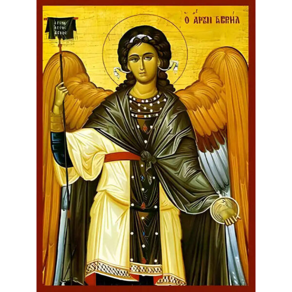 Εικόνα Ορθοδοξίας με περίγραμμα χρυσό σε ξύλο Φλαμουρίας με βάση Εικόνα ΑΡΧΑΓΓΕΛΟΣ ΓΑΒΡΙΗΛ Χειροποίητη Ελληνορθόδοξη εικόνα του Ιησού Χριστού, Κρεμαστή πλάκα βυζαντινής τέχνης, χριστιανική τέχνη Διάσταση 15×11 cm (5,9×4,3 ίντσες) INTRAEK-337757864503