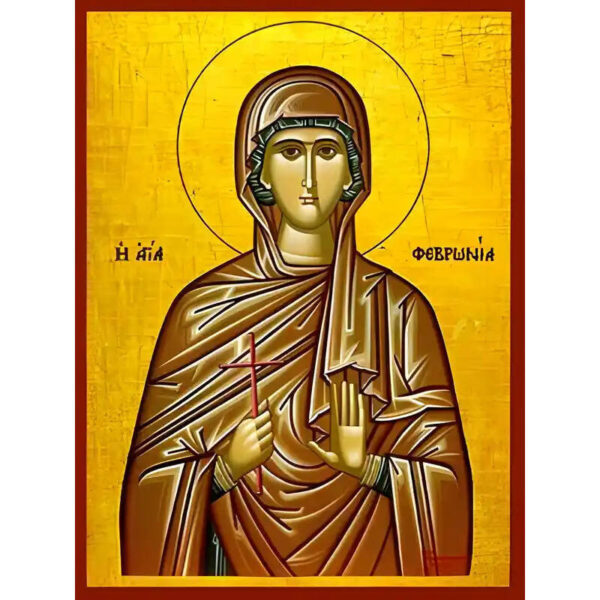 Εικόνα Ορθοδοξίας με περίγραμμα χρυσό σε ξύλο Φλαμουρίας με βάση Εικόνα ΑΓΙΑ ΦΕΒΡΩΝΙΑ, ΠΑΡΘΕΝΟΜΑΡΤΥΣ Χειροποίητη Ελληνορθόδοξη εικόνα του Ιησού Χριστού, Κρεμαστή πλάκα βυζαντινής τέχνης, χριστιανική τέχνη Διάσταση 40×30 cm (10,2×7,9 ίντσες) INTRAEK-1447757865218