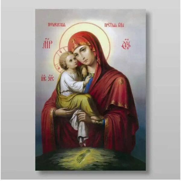 Εικόνα Ορθοδοξίας με περίγραμμα χρυσό σε ξύλο Φλαμουρίας με βάση Pochaevskaya Εικόνα της Μητέρας του Θεού Χειροποίητη Ελληνορθόδοξη , Κρεμαστή πλάκα βυζαντινής τέχνης, χριστιανική τέχνη Διάσταση 15×11 cm (5,9 x 4,3 ίντσες) INTRAEK-21013